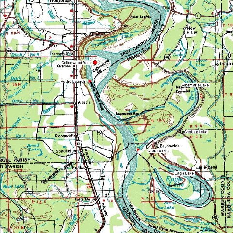 ACCESS: Public boat launch off Highway 65 just east of Transylvania, Louisiana. The boat launch to Cottonwood Bar is approximately 20 miles north of the I-20 exit at Tallulah, LA and 10 miles south of Lake Providence, LA. The launch is directly across Transylvania Chute from Cottonwood Bar.