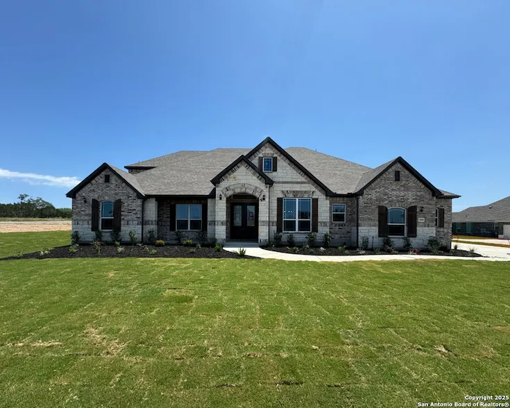This elegant 1.5 story home offers a gourmet kitchen with built-in appliances, a walk-in pantry, and a spacious center island that opens into a cozy family room with a fireplace. The separate dining room, with a butler's pantry, is perfect for entertaining, while a private study provides an ideal workspace. The luxurious primary suite features two walk-in closets and a spa-like bath with an oversized shower, separate vanities, and a garden tub. Secondary bedrooms include walk-in closets for added convenience