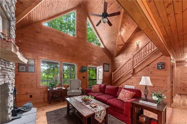 Be the first to call this cabin home! Private log home at 4000-foot elevation w/ long-range views available! This custom home has never been lived in & is being sold mostly furnished! An open floor plan w/ vaulted tongue & groove ceilings, floor to ceiling stone fireplace, a large kitchen w/ hickory cabinets, stone accented breakfast bar. Tile backsplash & counters. A spacious dining area for those large family retreats to the mountains. The main level includes a master BR & bath. Master bath includes tile floors & tile surround in the tub. Main level laundry room w/ sink. Woods floors in the living areas, tile in baths, & carpet in the bedrooms. Large loft area complete w/ bar & sink, room for the games, & overlooks the cabin below. Guest bedroom off the loft. The master BR has its own private balcony. Master bath has a 2 person jet tub, tile shower, & 2 vanities. Upgrades such as Moen ...
