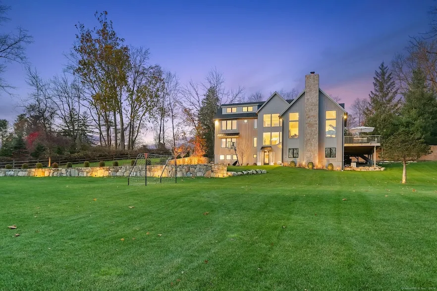 This better than new modern farmhouse nestled on 1.28 acres is a masterpiece of architectural design and sophistication and just steps from the beach, train, and shopping. Every detail of this 6,300 SF 5 Bedroom home has been meticulously curated, from the high-end materials to the advanced technology offering a modern, refined aesthetic to deliver unparalleled comfort. The double-height entry leads to open, light filled interiors, featuring expansive glass walls that seamlessly blend indoor & outdoor living. Stunning spaces on the main floor exceed every expectation, especially the Great Room with its cathedral ceiling and walls of glass that infuse the space with a sense of calm. The Kitchen is a sleek and modern central space with an oversized show-stopping marble island. An adjoining Butler's Pantry is equally well-equipped. A chic Dining Room, two stylish Bedrooms and Laundry complete the floor. A Zen-like Primary Suite anchors upstairs with a spa-like Bath, custom walk-in closets, additional ensuite Bedroom, Den, flexible Rec space and half Bath. A Lounge area and Bedroom/Home Office above has expansive views. Downstairs includes a Bedroom, Playroom, Gym, and Mudroom. Complementing the exceptionally chic and ethereal vibe within, the professionally landscaped exterior features a hot tub, outdoor loggia, and entertainment areas, perfect for enjoying the serene surroundings. Mature trees, manicured lawns, and stunning views complete this idyllic property. Room for pool.
