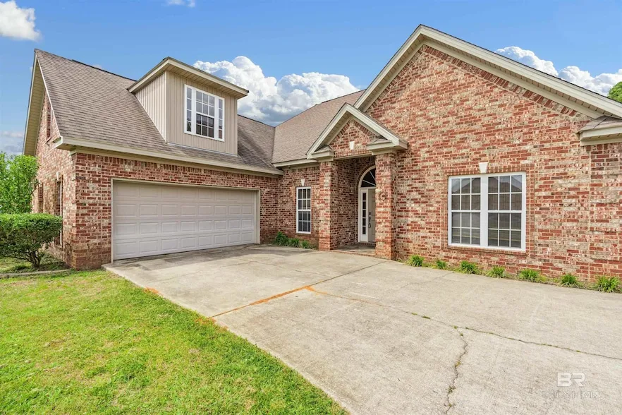 Welcome to your dream home in West Mobile! This charming brick abode offers an array of desirable features, making it an exceptional find for those seeking comfort, space, and amenities. Situated on a sprawling 1.45-acre parcel of land, this custom-built home warmly welcomes you with its picturesque surroundings. Residents enjoy deeded access to a 12-acre common area featuring a serene community fish pond, adding a touch of tranquility to everyday life. Step inside to discover a spacious living room adorned with vaulted ceilings and a cozy wood-burning fireplace, used for gatherings or quiet evenings at home. The kitchen beckons with abundant cabinetry, ample counter space, and a convenient breakfast bar, catering to both culinary enthusiasts and casual dining alike. This meticulously designed residence boasts three bedrooms and three and a half baths, including a luxurious master suite...