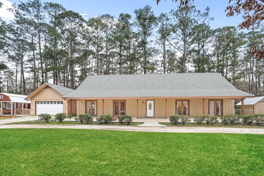 CLASSIC ACADIAN WITH CIRCLE DRIVE, FIREPIT, CHAIN LINK FENCE. NEW ROOF, UPDATED APPLIANCES AND PRIMARY BATH SHOWER UPGRADED. OPEN FLOOR PLAN, WOOD BURNING F/P, WOOD BEAMS AND CEILINGS, ALL FRENCH DOORS OPEN TO 400S/F COV. PORCHES. KITCHEN HAS W/I PANTRY, SS APPLIANCES, DACOR GAS COOKTOP, DBL. OVENS. LAUNDRY CONNECTS TO 534 S/F GARAGE. ADORABLE GUEST COTTAGE IS MULTI FUNCTION, 269 S/F W/FULL BATH. WORK FROM HOME OR MIL STE.. 1500 S/F WORKSHOP, ROLLUP DOOR,15' CEIL, NORITZ INSTANT HOT WATER.