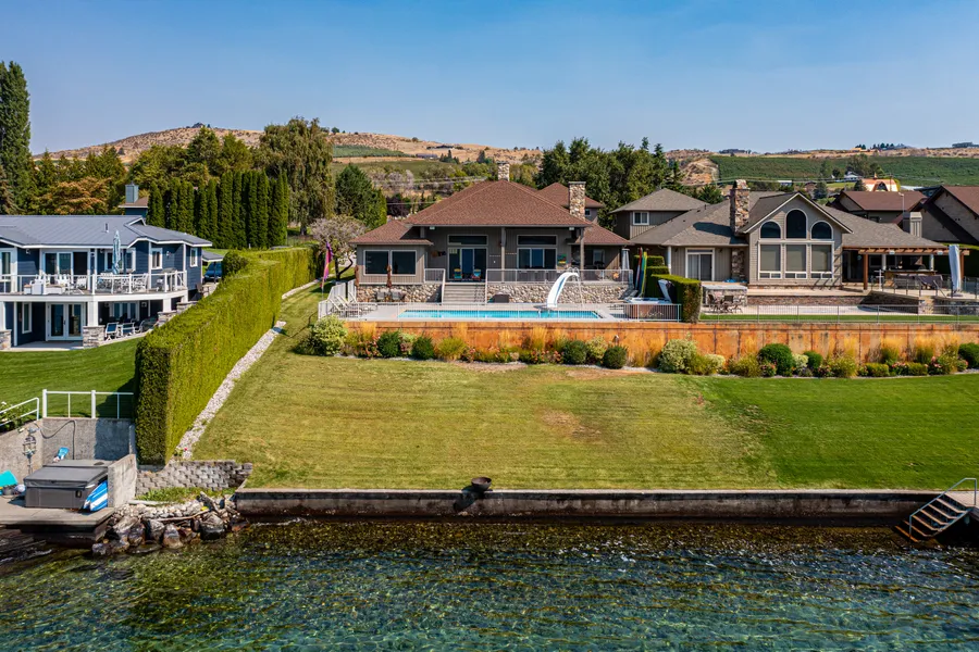 Rarely available highway to waterfront parcel along the iconic North Shore of Lake Chelan. Realize what your hard work has earned you and treat yourself to the finest luxury waterfront living Chelan has to offer. Seven bedrooms with two master suites + 5 baths. Attached 3 car garage plus an additional 40’ x 60’ detached custom garage. All of the necessary amenities: SHARED DOCK, OVERSIZED 9000LB BOAT LIFT, 2 JET SKI LIFTS, + 2 MOORAGE BUOYS. The Sellers favorite part is how this dock is sited off to the corner of their parcel, so they have a completely unencumbered swimming beach and the most amazing view corridor. 1.29 acres flat from the highway down to the water’s edge. Custom pool deck, 8-person Spa + Water Slide all facing the panoramic views of Lake Chelan.