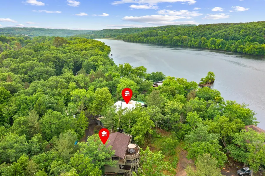 Captivating and magnificent views are awaiting you at this intriguing property. This contemporary home sits just above the St. Croix River with river access. The sublime interiors embrace the naturalistic setting from nearly every room. Floor to ceiling windows and enchanting outdoor spaces perfect for entertaining take on the expansive view of the river. Designed by Arthur Svendsen in early sixties, these 2 homes joined by a custom bridge feature a total of 5 bedrooms, 5 bathrooms, and multiple oversized decks and screen porches to take in the beautiful scenery. This property is part of the Rockpile Neighborhood and each house owns 10% of Rockpile commons which includes a pond with fountain and surrounding 1.58 acres. This listing as a whole owns 20%. *See supplement for individual lot pricing.
