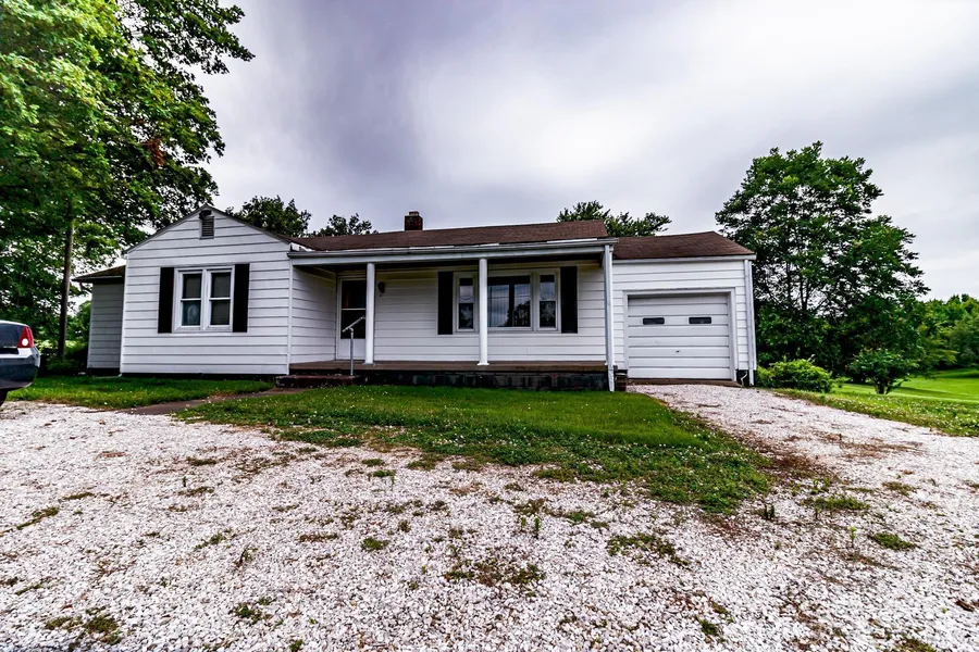 Located across from The Rustic Golf Course and Country Club, this all brick sturdy built home on 1.25+ acres is a blank canvas ready for new owners. With a large family room and generously sized kitchen, the spaces could easily be opened up and made into a very large great room. A large full bath and 3 bedrooms occupy the other end of the home. Additionally there is a full basement for extra storage space. Home is being sold As-Is Where-Is. Conventional loans and cash offers only.
