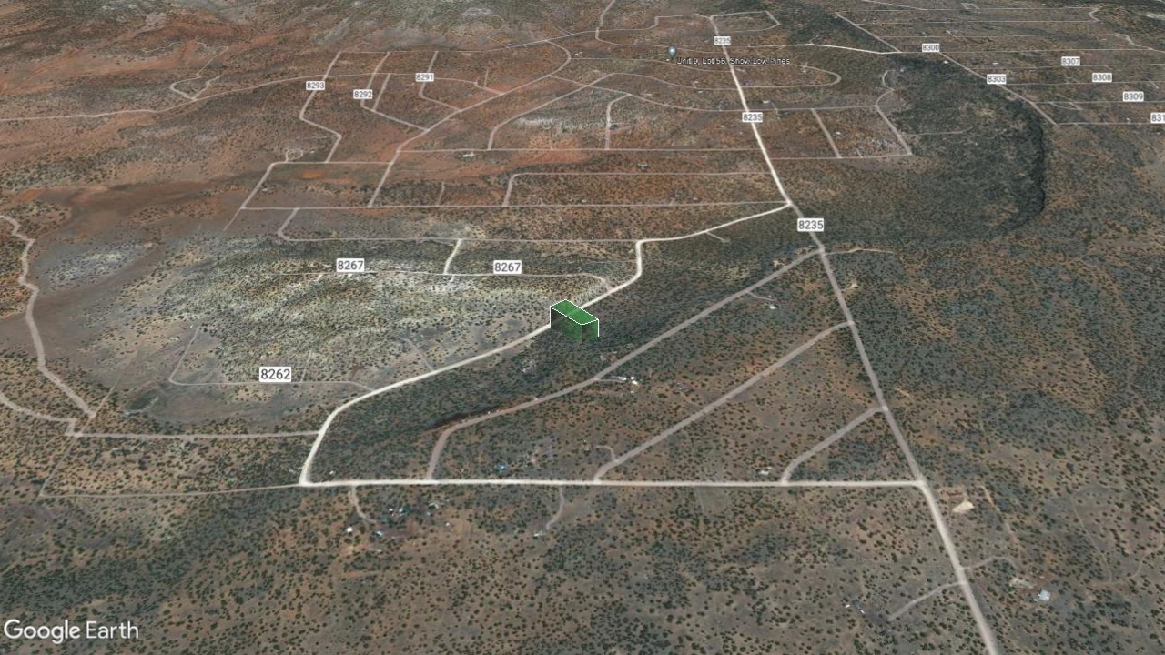 Traveling to the corners: I followed the GPS coordinates using Google maps, which took me along Victor/8260 for two of the four points. The property slopes upwards significantly and the terrain is quite rocky. Lots of volcanic rock and juniper trees were present, with a couple of dirt clearings. There were no utilities convenient to the property, but there is power service in the neighborhood nearby. Also, a neighbor was using Larson for their trash service. The neighborhood also has several wells set up to fill up cisterns. Cell reception was consistently 1-2 bars and 4G (Verizon).