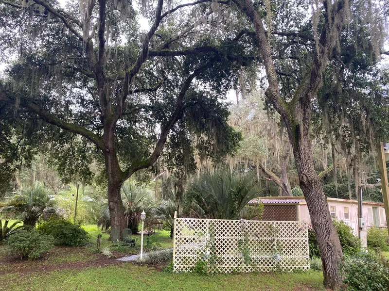 1.3 acres with separate power and septic. Access to Cowpen Lake , Lots have different parcel numbers with homes and are being sold together. Property is fully fenced with many beautiful palm trees, large live oaks, variety of plants, flowers. Also a guest cottage, retro mini airstream that could be restored for guest, storage sheds, outdoor kitchen with patio and smoke house, carport, workshop, irrigation, and a rock fish pond. Both homes are great for a handyman and could both be income producing. The property is on paved East Cowpen Lake Rd with a view of the lake. Located between Gainesville and Palatka, 20 min in either direction. The yard is grassy and is very tropical.