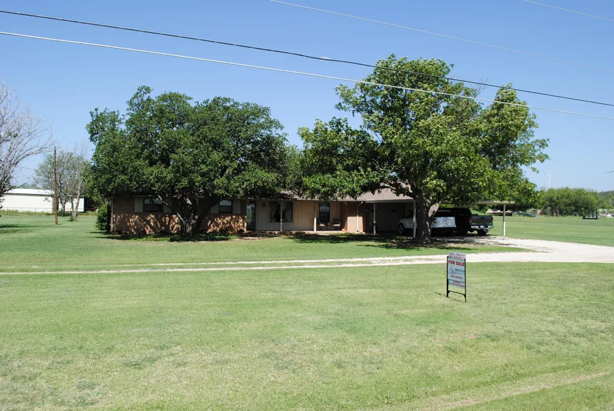 Three (3) bedroom, two (2) bathroom, two (2) car garage plus two (2) car carport brick home on 1.3 acres m/l in Bryson; Den has a WBFP with a brick hearth, built-in shelves, carpet and ceiling fan and is open to the breakfast nook and kitchen; Breakfast nook, kitchen and utility room have ceramic tile; The lovely kitchen has ample formica countertops, refaced cabinet doors with decorative frosted glass doors near the ceiling, a four (4) burner gas cooktop, built-in oven with warming tray, built-in microwave, built-in dishwasher, stainless steel double sink, and pantry; A separate bathroom with vanity, step-in corner shower and toilet is located off the garage entrance and near the utiltiy room; The large utility room functions well with built-in cabinets, an additional pantry, full-size washer and dryer connections (gas dryer conveys), and a hanging/drying bar; The garage has additional storage space with shelves; The Master bedroom showcases a sunny yellow paint color, carpet flooring, two closets and two windows with 2" blinds; Bedroom # 2 has carpeting, a ceiling fan, two closets and two windows with 2" blinds; Bedroom # 3 has carpet and a closet; The hall bathroom features a stand alone vanity with granite countertop, a ceramic tiled shower/tub combination, a toilet and ample built-in linen cabinets; The backyard features an 18' x 16' covered patio, trees, a level topography and a pipe fence on one side of the property; New composition roof installed in August, 2014.