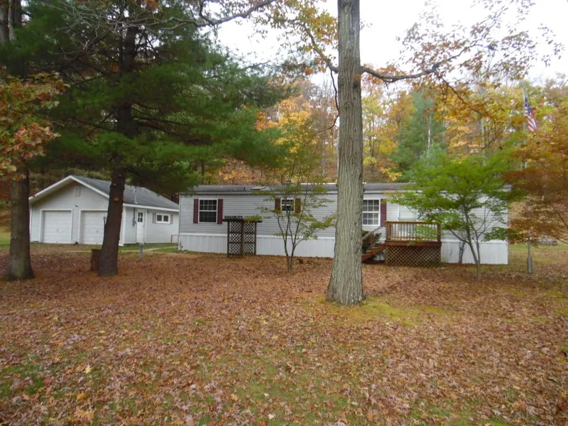 1999 Redman mobile home with detached 24x22 heated garage on 1.3 acres in Dorrance Township. Vaulted ceiling in LR and kitchen. Two bedrooms and a 3/4 bath. 10x 20 covered back deck plus a shed.