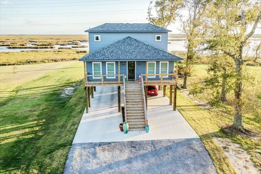 Come view this beautiful three level home situated on over 1 acre of land, with gorgeous breathtaking sunsets. 1st level has lots of covered parking and storage with a 1/2 bath. Take the large front stairs to the second level or the rear stairs to second level also. As you enter you will find an open kitchen with massive island, stainless appliances, walk in pantry, granite throughout. Dinning area opens to living room, walk out balcony. Two guest bedrooms on this level with full bath. Take the interior staircase to the third level and find the large private master suite, double vanities, large walk in shower, soaker tub, oversized closet. This level has beautiful views as you sip your morning coffee.