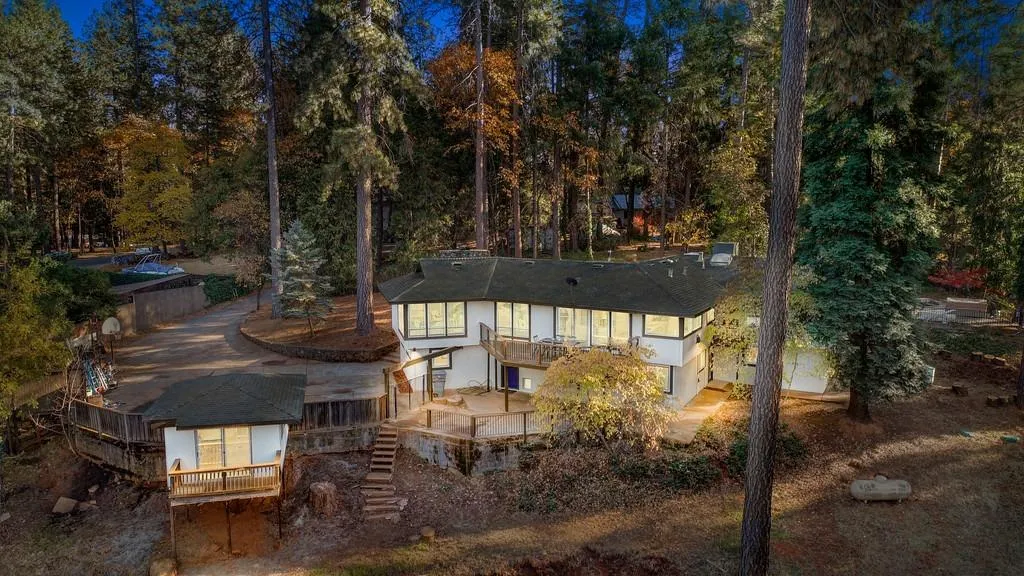 DISCOVER YOUR PRIVATE OASIS! This incredible newly remodeled home offers sanctuary on a wonderful hilltop setting w/over an acre of land. This updated custom home has a mid century architectural touch, w/walls of windows, open flowing spaces & expansive rooms. The grand great room has a fireplace, terrific views, an abundance of natural light w/floor to ceiling windows & a wonderful chef's inspired kitchen. The Kitchen features a huge island, tons of counter-space, double ovens, Black stainless kitchen-aid appliances, quartz counters, full back-splash, pantries, sitting or nook area along w/access to the private deck. The master suite is vast with tons of windows, a new bathroom, views & access to the private pool area. The secondary bedrooms are well sized that can accommodate multi generational living. An oversized downstairs area w/separate outside access offers a huge bonus room, 3 bedrooms, large laundry & new bath. The home has a large pool area along w/ a detached office or shop