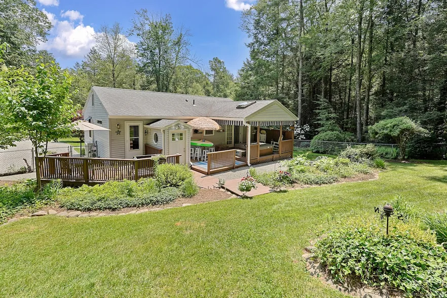 Welcome home to this charming 1,412 sq ft ranch just a stone's throw from sparkling Lake Bunggee! Inside, an airy open floor plan unites a sun-splashed living room with a stylish kitchen and dining area-granite counters, generous cabinetry, and sight-lines that make entertaining a breeze. Three comfortable bedrooms plus a flexible fourth (ideal for an office, playroom, or guest room) share 1 1/2 nicely updated baths. Step outside to a backyard built for gatherings: a roomy deck, bubbling hot tub, and plenty of lawn for games or gardens. Town and Lake-approved plans-and prepped site work-are ready for a future oversized garage. Launch your boat, cast a fishing line, or swim all summer long with deeded Lake Bungee access just minutes away. Easy, single-level living meets a true outdoor lifestyle-come see why this cozy ranch is the perfect lakeside retreat!