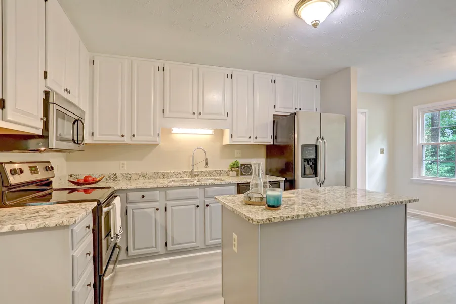 Gorgeous home in the exclusive neighborhood of Banbury Cross! Enter into this bright and freshly painted home that boasts 3 spacious bedrooms and 3 full bathrooms on a 1.3 acre corner lot on a cul-de-sac. The kitchen has been beautifully updated with granite countertops, new flooring, and includes a sizable pantry. Cozy up to the brick fireplace while entertaining friends and family in your generous family room with vaulted ceilings and skylights. Experience your own private oasis with French doors that open to an astonishing sprawling deck that overlooks a tranquil setting of mature trees.