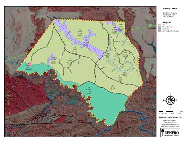 This tract is currently being used for timber production and as recreational hunting property. This is property has approximately one quarter mile on Neches River frontage and Box Creek runs through the property for approximately one mile which is the actual property boundary. The pine on approximately 1,000 acres has not been thinned in 16 to 23 years. The remaining 307 acres is natural timber along the banks of the Neches River and Box Creek which consists of very large old growth timber. Amenities include electricity. The majority of this acreage is in gently rolling hills with good hunting with excellent income potential from the timber. The property is located on ground that is excellent for wet-weather logging near Alto, TX.