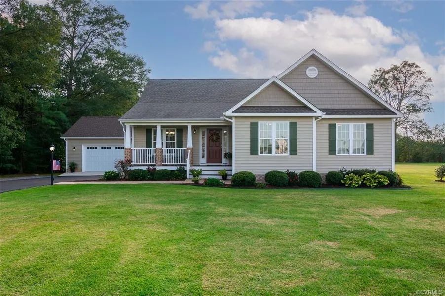 Welcome to the serene country life! Enjoy a peaceful setting and room to roam but still just 10 minutes to Ashland and 20 minutes to Short Pump! This beautifully maintained Craftsman-style rancher is ideally situated in the middle of 1.3 acres. With minimal restrictions, this would make an ideal mini-farm or just offer plenty of space for kids, adults and pets to enjoy! The detached, oversized 2 car garage is almost BRAND NEW. Relax on the front porch or take in the backyard from the deck - both just sealed and stained! Inside the home features a vaulted ceiling and fireplace in the family room plus hardwood floors. The primary bedroom has new carpet, a walk-in closet and private bathroom with soaking tub and stand-up shower! The eat-in kitchen gets great natural light and features granite countertops. There is a dining room or potential office space. The driveway was just sealed and the...