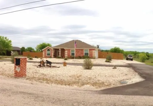 Lots of Texas-style charm in this 1653 SF brick home with rock accents in the desirable River Place acreage subdivision. This well maintained 7- year old home is like new and the amazing open floor plan, high ceilings, and stained & scored concrete floors throughout makes this house seem even larger. The home boasts 3 bedrooms, 2 baths, office/ optional 4th bedroom, "Texas Star" in the entry concrete floor, an oversized garage, wired surround sound in the living room, and insulated tilt-in windows. The master bath has a cultured marble jetted tub with tile surround, a large separate walk-in shower, double sink vanity, and a walk-in closet. The kitchen offers granite counter-tops, custom Pine cabinetry with pull-out storage, two pantries, dishwasher, built-in microwave, an electric smooth-top range, water line for the refrigerator, and a "Texas Star" hanging pot rack. There is plenty of room for backyard entertaining with the covered back porch, open patio, and the screened in gazebo. The exterior also features a no-maintenance rock front yard, an asphalt circle drive, a large workshop/storage building, and a raised garden area. Call today for your viewing appointment.