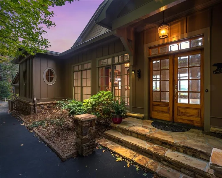 This gorgeous executive residence offers 4 BR's & 3 ½ BATHS with an open floorplan including a magnificent Great Room with 26 Ft height and year round panoramic NE Mountain Views that see Amicalola Falls. Hardwood flooring throughout the main level with stacked stone fireplace, lots of windows for natural light, expansive master b/r suite with its own stacked stone fireplace and jacuzzi tub, plus custom built-in cabinets and shelving in the closets. The Kitchen enjoys dramatic high volume ceilings, upgraded solid wood cabinetry, granite countertops, stainless steel appliances, and breakfast bar. Massive Family Room with hardwood flooring on the terrace level with wood ceilings, billiard room and full bar with built in cabinets and 3rd fireplace unit, 3 oversize bedrooms and 2 large bathrooms plus storage. Large screen porch off kitchen and 2nd covered porch located directly off the master b/r suite with additional covered porches and decking on the terrace level. Oversize Garage/2 on the main with flagstone front porch and new level asphalt driveway with newly replaced retaining wall with pressure treated timbers. This luxury property is equipped with a full house generator, and provides million dollar views from every room. An absolute dream home that won't last. Recent updates include new asphalt, driveway and retaining wall in 2023. Brand new roof, exterior completely repainted plus most interior walls, hardwoods on main level professionally refinished, and new carpet installed in Master BR suite; all in the last 45 days!