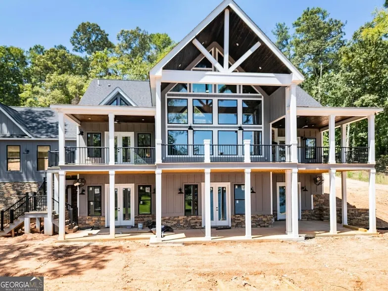 NEW CONSTRUCTION ON JACKSON LAKE - Wind your way down a long private road to end at this stunning lake lot in a private cove with big water views. 1.32 acres of privacy with approximately 235 ft of shoreline on this Georgia Power Lease Lot. Construction is now complete on this beautiful home with 4 lake view bedrooms each with their own bathroom. The main floor living area of this home is an open floorplan with floor to ceiling windows, floor to ceiling stone fireplace, wood plank ceiling and beams showcasing the amazing views. The main floor kitchen with its large island is perfect for entertaining. Downstairs the open recreation room with another fireplace, kitchen, laundry and 2 bedrooms with private bathrooms in each side. Open decks on the main floor with fireplace, and open patio on the downstairs level. A double slip boathouse with sun platform has been added. Make this your hom...