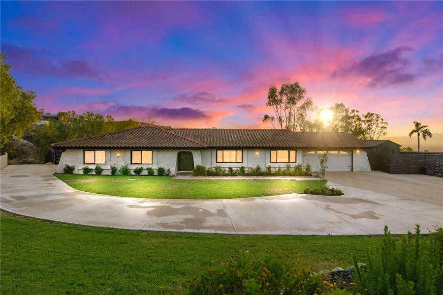 Welcome home to your private oasis! Breathtaking city light views are waiting for you! This FULLY REMODELED POOL HOME nestled in the sought after community of Woodcrest has so much to offer. Sitting on over an acre of land this home is the perfect home for someone looking for space and comfort. Prepared to be captivated from the moment you drive up to the extended driveway with a freshly painted exterior and a brand new concrete driveway, creating a beautiful curb appeal. As you make your way inside you will be greeted with double doors and neural airy walls that compliment perfectly with the light laminate floors. The spacious fully renovated kitchen features quartz countertops, an over sized island, backsplash that ties in perfectly with the cabinets and stainless steel appliances. The adjacent living area features a fireplace and two sets of double French doors. This single story home has four bedrooms all with their ceiling fans. The primary suite includes its private bathroom with hers and his sinks. The other tastefully upgraded bathroom has a modern free standing bathtub, separate shower and double sinks. This bathroom can also be accessed from the backyard making it extra convenient for guests. The backyard is an entertainers delight. Picture yourself in the sparkling pool while enjoing the sunset and unobstructed views this home offers. In the back, you will also find a covered patio and an abundance of space ready for your vision. There are three separate units that are currently used as bedrooms and storage plus a fully functioning bathroom on the rear of the property with its own water heater. This home also includes sheds for extra storage. This is the perfect home for someone looking for a blend of tranquility and space! Schedule your appointment before its gone!