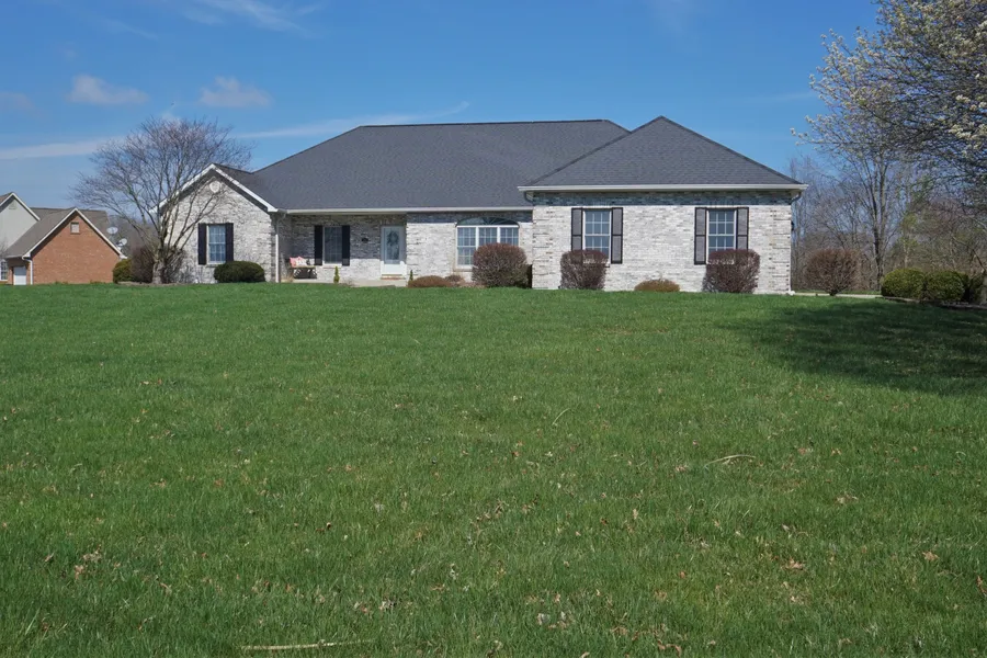 Ultra-Spacious Estate Poised on 1.3 Acre Lake Front lot. Well-designed with a fluid layout. Built to accommodate In-Laws. Main floor offers 9 ceiling, 3 bedrooms, 3 baths, formal dining room, office, spacious living room with fireplace, kitchen, breakfast room & laundry room. Kitchen features hickory cabinets, granite counter tops, stainless steel appliances. Generous Master bedroom suite with double walk-in closet. Master bath has corner jetted tub, 2 vanities, separate shower and linen closet. Solid wood 6 panel doors, Lower level is accessible with stair lift at rear stairs from garage, 36" doors, 9' ceiling, large kitchen with appliances, family room with fireplace, rec room, bedroom suite, craft room, 3 baths, laundry room, exercise room, office. Enjoy your own Paradise in the fiberglass in-ground pool, custom patio at walkout, deck off main level and a boat dock at the stocked lake (trolling motors only). Cinch Home Warranty is included.