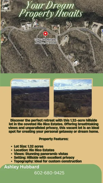 Introducing a remarkable chance to own a generous 1.32-acre parcel (57,499 sq ft) in the picturesque Rio Rico, AZ. This expansive piece of land, nestled among the captivating rolling hills of Santa Cruz County, offers endless possibilities for homeowners, builders, and investors alike.