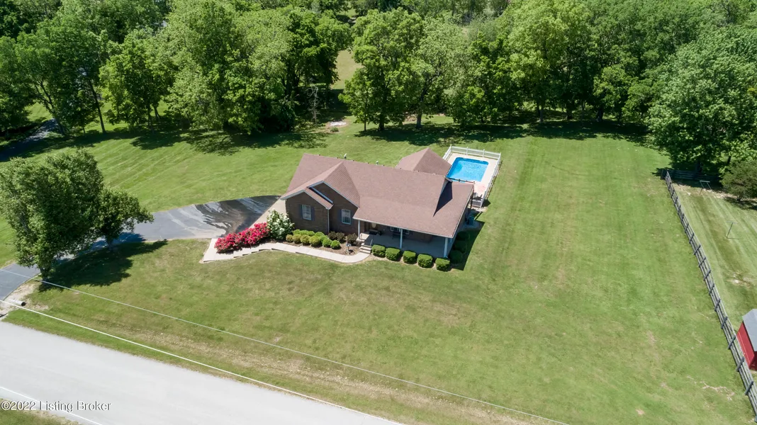 In ground salt POOL! Want to enjoy life, then buy this wonderful home! Brick ranch with a country setting yet close to shopping. Large deck and patio to enjoy cook outs and swimming. One Level living, vaulted ceiling, gas fireplace and open eat-in kitchen with oak cabinets and black granite tops, three bedrooms with nice primary bath and walk in closet. Laundry room on main. Lower level has finished great room, office with egress window, full bath and loads of storage! Oversized two car garage has work benches that remain. Storage shed in rear, creek and view of open field. Patio is wired with 220 for hot tub. This is truly a great home!