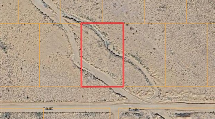 Terrain is mostly flat with a gentle wash running through part of the property. The ground is classic Mohave Desert: hard-packed sandy soil with scattered shrubs, desert grasses, and low brush. Youll see creosote, sagebrush, and tumbleweed patches, ...