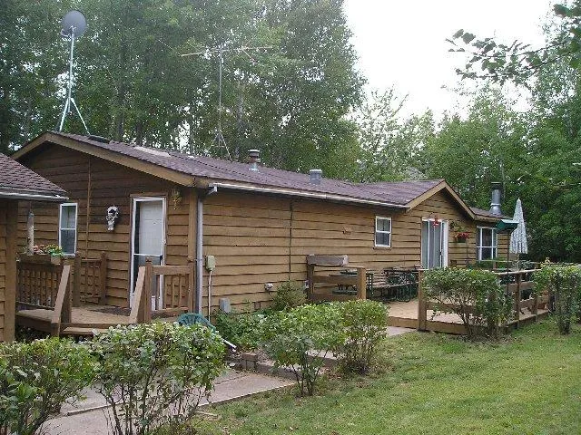 A perfect level beach with approximately 215 of frontage. Main home with open living/kitchen/dining/family area with fireplace. Owners bedroom suite with private bath. Two more bedrooms and full bath. Guest cottage is pine wood cozy with fireplace in living room, kitchen with view right to the lake, 2 more bedrooms, and bath. Double garage and workshop. Storage building. Both have decks on the lakeside. Private setting.