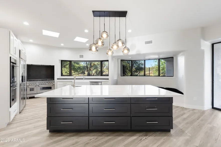 Nestled on a private, interior acre-plus lot within the prestigious guard-gated community of Sincuidados, this beautifully remodeled modern residence offers refined living surrounded by pristine Sonoran Desert beauty. Upon entry, you're welcomed by an abundance of natural light streaming through floor-to-ceiling sliding glass doors in the spacious living room and a wall of windows in the formal dining area, seamlessly blending indoor and outdoor living. The thoughtfully designed split-level floor plan features four ensuite bedrooms, including an oversized guest suite with its own private paver-stone courtyard and direct access to a single-bay garage, ideal for guests or multigenerational living. The luxurious primary suite is a true sanctuary, complete with a gas fireplace, private bonus room/den with separate entrance, and direct access to a cozy courtyard featuring a gas fireplace. The spa-inspired primary bath showcases designer lighting and finishes, a generous walk-in closet, and the convenience of a full-sized washer and dryer. The light-filled chef's kitchen has been remodeled to perfection, centered around an expansive quartz island with vegetable sink and beverage drawers. A large picture window frames serene desert views, while premium features include a ZLine gas range, built-in stainless-steel appliances, walk-in pantry, banquette seating, and a charming gas fireplace. Outdoor living is equally exceptional. A deep covered patio off the kitchen is equipped with a built-in BBQ, extensive counter space, and ample room to create a custom outdoor kitchen. The resort-style backyard offers a sparkling pool, two-way gas fireplace, and two lush grass areasperfect for pets, play, or a putting green. Sincuidados is a low-density, guard-gated community spanning nearly 600 acres of private, protected Sonoran Desert. Residents enjoy a 100-acre nature preserve encompassing most of Lone Mountain, complete with private hiking trails. Community amenities include tennis and pickleball courts, basketball, a clubhouse, and private streets ideal for walking, jogging, and biking. Directly across from the entrance, residents have access to the 25,000-acre Scottsdale Desert Preserveone of the largest urban preserves in the countryoffering hiking, horseback riding, and mountain biking. A vibrant social committee hosts regular community events throughout the year. Conveniently located near North Scottsdale, Grayhawk, Kierland, Cave Creek, and Carefree, this home offers easy access to world-class golf, dining, shopping, and outdoor recreation.