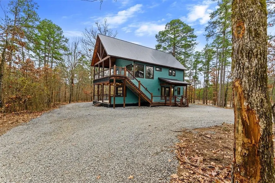 "Early Morning Shakes" is a captivating retreat nestled in the stunning pines of the northern Hochatown area offering a more secluded slower paced subdivision. This 3-story cabin on 1.33 acres (MOL) offers a spacious haven with a unique touch. The two queen bedrooms, along with two loft areas, one with a set of bunks and the upper with two twins, ensure comfortable accommodation for 10+ guests. One of its standout features, the contemporary aluminum glass roll-up patio door seamlessly connects the indoor space to the outdoor kitchen, creating a harmonious blend of nature and comfort. The rustic design complemented by industrial elements gives it a distinct character, providing a cozy yet contemporary atmosphere. The cabin's amenities truly elevate the experience from the relaxing hot tub to the inviting fire pit, perfect for gatherings and creating unforgettable memories. Additionally, the inclusion of furnishings makes it hassle-free for anyone looking to move right in or start renting it out immediately. It is near the National Forest land of SE OK that will bring additional activities for guest; hiking in the forest, ATV riding, and wildlife watching in designated areas and access to the spectacular views of the north end of Broken Bow Lake. The added conveniences of a generator hookup (for electrical outage emergencies) and an EV charger speak to its modern functionality and preparedness for different needs and preferences. Whether for relaxation or adventure, "Early Morning Shakes" seems like a place where nature meets rustic/industrial and a touch of modern comfort in the heart of Pine Hills.