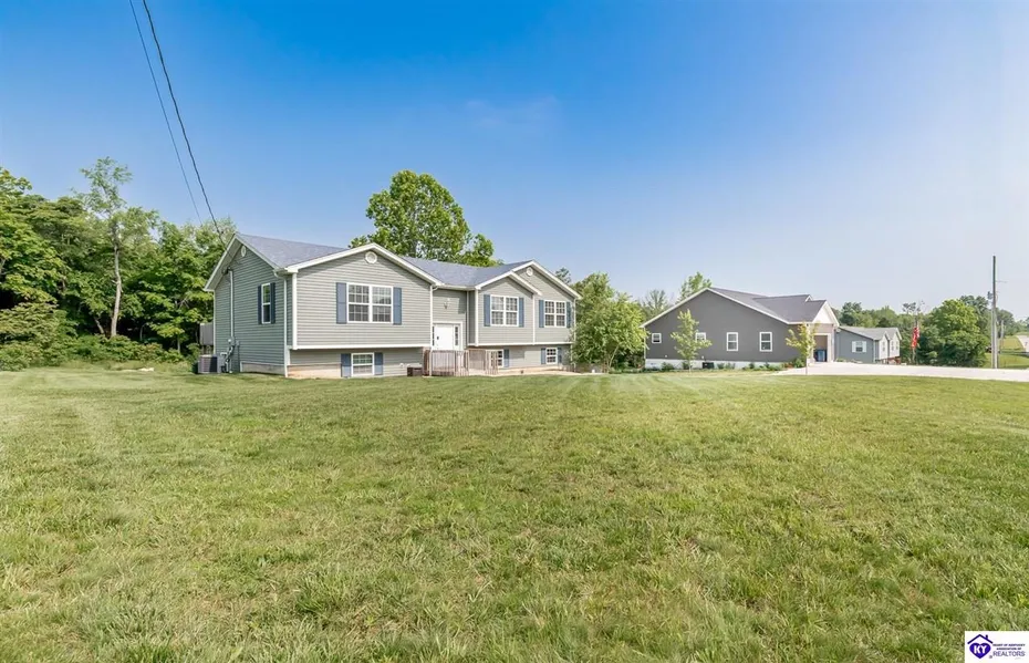 Welcome to this inviting 3-bedroom, 2-bathroom 4 year new home nestled in a peaceful rural setting just a hop, skip, and jump away from Ft. Knox. Situated on over an acre and a quarter, this raised ranch floor-plan offers modern comforts and plenty of space for relaxed living and entertaining. Three spacious bedrooms and two full bathrooms, ideal for families or those seeking extra room for guests. Light and bright open floorplan. Step out onto the large deck at the back of the home, perfect for outdoor gatherings, barbecues, or simply unwinding in the fresh air. The finished basement expands the living area, providing versatile space for a recreation room, home office, or additional storage. Embrace the tranquility of rural living while still being conveniently close to Ft. Knox, offering easy access for military personnel or employees. This property welcomes pets and offers ample outdoor space for them to roam. Bring your chickens! Don't have chickens yet? You're in the country! It might be time to get some! This is a wonderful opportunity to experience the comforts of a newer home in a serene rural environment, complemented by modern amenities and easy access to nearby attractions like Ft. Knox. Don't miss out on making this your next home sweet home!