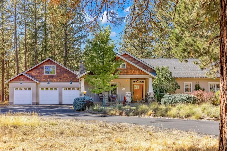 Custom-built, single-level home in the sought-after Sage Meadow neighborhood, backing USFS land for terrific privacy and forest views. The interior features hardwood floors in the main living areas, solid wood doors, and detailed woodwork throughout. The layout includes a living room, family room, and dedicated dining room with built-in hutch and bar. The large kitchen has a large island, granite countertops, stainless steel appliances, an eating bar, pantry, and ample storage. The primary suite offers deck access, a walk-in closet, a tiled walk-in shower, and a soaking tub. Exterior features: a 1,032 sq ft three-car garage includes a stairwell to a large storage area/bonus room (convertible with modifications); covered front porch, rear deck, or paver patio. fully fenced backyard with forest access gates; cement siding, a landscape shed, RV parking, a large paved driveway, and a blend of natural and manicured landscaping.