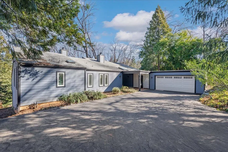 Single-level home with a mid-century modern vibe featuring vaulted white-washed wood ceilings, clerestory windows, skylights, and a floating hearth fireplace. Over the years, the owners have upgraded with new cement-board siding, windows, flooring, paint and roofing. Kitchen and half-bath have been fabulously remodeled. Kitchen features a walk-in pantry, central island, breakfast area, and counterweight pendant lights (also known as rise & fall pendants) that can be raised and lowered as desired. Hall bathroom features double sinks and storage closet. Owner's suite has dual closets and a split bathroom with 2 vanities, separate tub & shower area, and a private water closet. The set-up is perfect when two people are trying to get ready at the same time! 2-car garage is separated from house by a covered breezeway which is the perfect protected area for dry outdoor storage, pets, potting bench, or a retractable laundry line. Spacious deck overlooks a buffer of trees and the Alta Sierra golf course. There are no houses directly behind this lot. Sit on the deck, enjoy the views and the geese honking & flying from the many nearby ponds. A few more updates will make this house your relaxing retro oasis or entertainer's delight -- your choice.