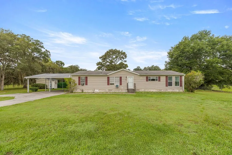 Welcome to your new home! This spacious 3-bedroom, 2-bathroom mobile home is perfectly situated on 1.35 acres, offering the ideal blend of peace and convenience. Nestled in a quiet setting, you'll enjoy the serenity of the area while still being just minutes from hospitals, restaurants, shopping, and more. Inside, the home provides comfort and functionality, with plenty of room for both relaxation and entertaining. Outside, you'll find a 2-car carport and two storage sheds, giving you ample space for vehicles, tools, and equipment. A thoughtfully designed ramp ensures easy accessibility, and the washer and dryer are included for added convenience. Don't miss this wonderful opportunity to own a home with space, privacy, and a location that keeps you close to everything you need!