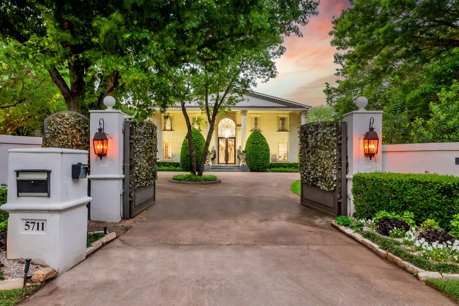 1.36 acre hideaway in Preston Hollow Timeless Elegance. Established in one of the most exclusive neighborhoods in Dallas, 5711 Park Lane is a traditional mansion on 1.36 acres with enduring style and privacy. A jubilant restoration and expansion brings this estate gorgeously back to life and ready for its next owner. Upon arrival, the front yard welcomes with mature shade trees and manicured hedges at the base of soaring front-porch columns. Two entry gates give guests an easy way to enter and exit the circular drive convenient for events with valet parking or just everyday visitors and deliveries. For further privacy and security, another driveway gate secures your five vehicles in garages beyond. A glimpse of the interior reveals just how special and carefully considered this home is. With Greek Revival and French Provincial influences, tts grand entry hall sits beneath a barrel-vault...
