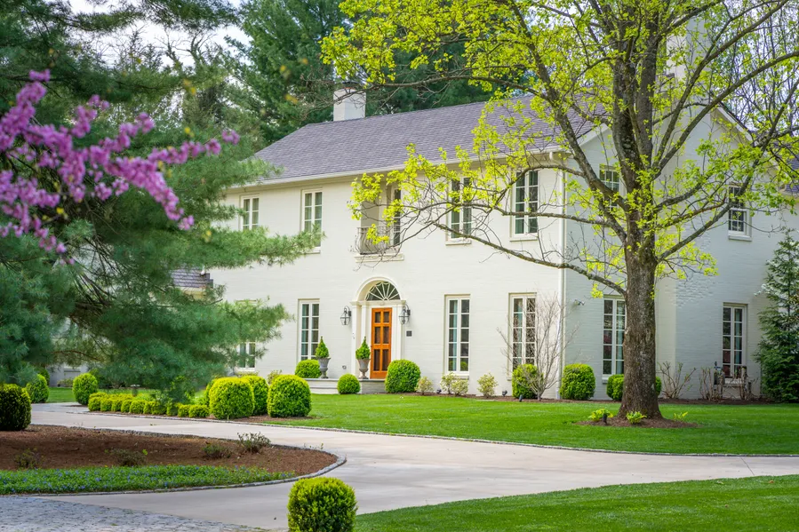 Simply enchanting, this two story estate mirrors the coveted Parisian honey colored facade with mellow grey roofs paired with a Romeo and Juliet balcony for a gorgeous allure. Revel in the private library with stained wainscoting floor to ceiling surrounding a stately fireplace, the living room with Baccarat chandelier perfect for entertaining, a formal dining room dressed for a black tie affair, and an exquisite powder room with antiqued vanity and marble tile floor. The kitchen will impress with courtyard views, Wolf & Subzero appliances, island, timeless cabinetry topped with quartzite and open to a spacious family room walled with windows and finished with an entertainment built in. The primary bedroom boasts floor to ceiling windows, hardwood flooring and a sensuous bath that is the perfect place to start and finish your day. More features include a new guest suite, hall of windows, lower level rec space, two laundry rooms & all bedrooms with baths en suite. Relax on the covered back patio and take in the beauty of the sumptuous landscape framed in stone knee wall and mature trees - the most beautiful 1.36 acres in Lexington. Beyond exceptional, this is extraordinary.