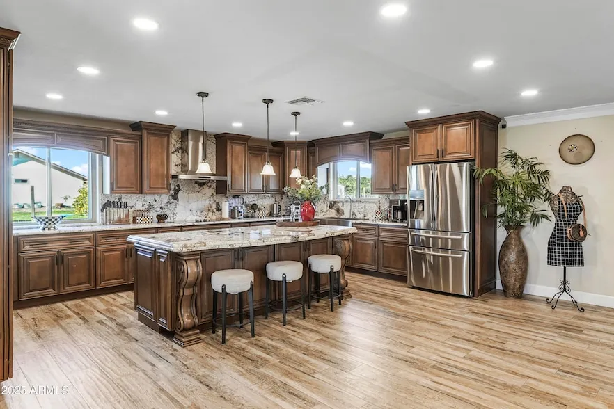 Welcome to your dream home in the heart of Buckeye, AZ! This stunning 4-bedroom, 3-bathroom home offers 2,108 square feet of meticulously upgraded living space and sits on an expansive 1.36-acre lot. From the moment you step inside, you'll be captivated by the modern finishes and seamless flow of this home, where every detail has been carefully curated to perfection. The gourmet kitchen serves as the heart of the home, featuring double ovens, granite countertops, & matching backsplash that effortlessly combines style and function. Throughout the home, wood plank tile enhances the design, providing a cohesive and durable foundation for everyday living. The open-concept layout provides a welcoming atmosphere, perfect for entertaining or relaxation. Come see this home today!