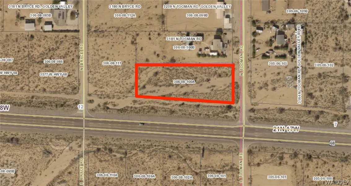 1.36 acres on High way 68 in Golden Valley. 400 feet frontage facing HWY 68. Great place to start a business. Corner lot of HWY 68 and Tooman Rd.