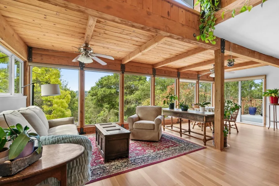 Hilltop Haven in Beautiful Pleasant Valley. Welcome to your dream home perched atop a scenic hill in the heart of Pleasant Valley! This peaceful and private retreat offers 2,949 SF of thoughtfully designed living space on an expansive 1.36-acre lot (59,416 SF). Inside, youll find 4 spacious BRs & 3 full BAsperfect for comfortable family living or hosting guests. The updated kitchen is a chefs dream, featuring granite countertops, an oversized island with a sink, built-in oven range, and a wine refrigerator. The open-concept dining area flows seamlessly into the cozy family room, where open beam and vaulted ceilings add character and charm, centered around a welcoming FP. Primary suite offers a serene escape, complete with a generous walk-in closet and beautiful views. Step outside onto one of three expansive decks to soak in panoramic views of the surrounding trees and valley ideal for relaxing in the hot tub, grilling with friends, or simply enjoying nature. Additional highlights include: large, flat outdoor area, Fenced garden & chicken coop, Ample space for RV/boat parking, & Extra guest parking for entertaining, Every window frames a picture-perfect view, making this hilltop home a true sanctuary. Included with home is a full house Generac generator.