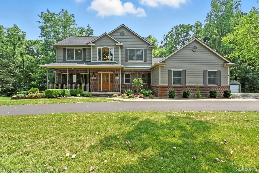 Amidst a picturesque wooded private setting, this custom designed home is on on on 1.36 acre, cul-de-sac, and 5 minute drive to downtown Saline! Captivating views from the Great Room, Kitchen, and Dining area; the centerpiece of the home. Andersen windows throughout with E-Glass! Chef's delight kitchen has cherry cabinets, hardwood flooring, granite countertops, vented exhaust fan, gas stove top, under cabinet lighting, walk-in pantry, and opens to beautiful mahogany wood deck with southern exposure. French door opens to inviting library with newer carpet. Added bonus is 1st floor bedroom. Oak trimmed staircase leads to 3 spacious bedrooms, two full baths and 2nd floor laundry. Finished lower level gives up north feel; includes media room, game area, pellet stove, bar, microwave, refrigerator, 3rd full bath, built-in speakers, egress windows, and spacious storage room. New landscaping and circle driveway 6/2025. New gutters and leaf guards, water pressure tank 8/2024. Large mudroom; insulated freshly painted three car garage has 2nd staircase to basement. Whole house generator and newer shed 2021.
