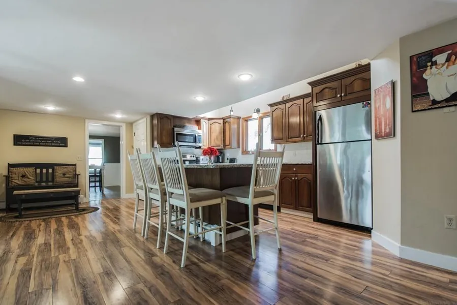 Want to see the Historic Grafton Common from your own home, walk to shops, parks, schools? Look no further!! 9 Room, 4 Bedroom, colonial with first floor master suite, detached-oversized 2-car garage with big 2nd level storage workshop for the hobbyist, all those projects. Welcoming kitchen has granite countertops big center island, SS appliances, gas fireplace for cozy conversations, skylight for sunshine. Enjoy your morning coffee in the heated skylit 4-season sunroom with slider to backyard. Dining room, living room, office with built-in cabinetry, half bath has washer-dryer hookups. Front hall staircase to 2nd level with three more bedrooms, plenty of closets, full bathroom. Stairs off 2nd floor hallway leads to walk-up attic - bring your ideas for this space. Home needs some elbow grease to spruce it up. Town water, sewer, low maintenance vinyl siding, 9 rear lot (not another house ...