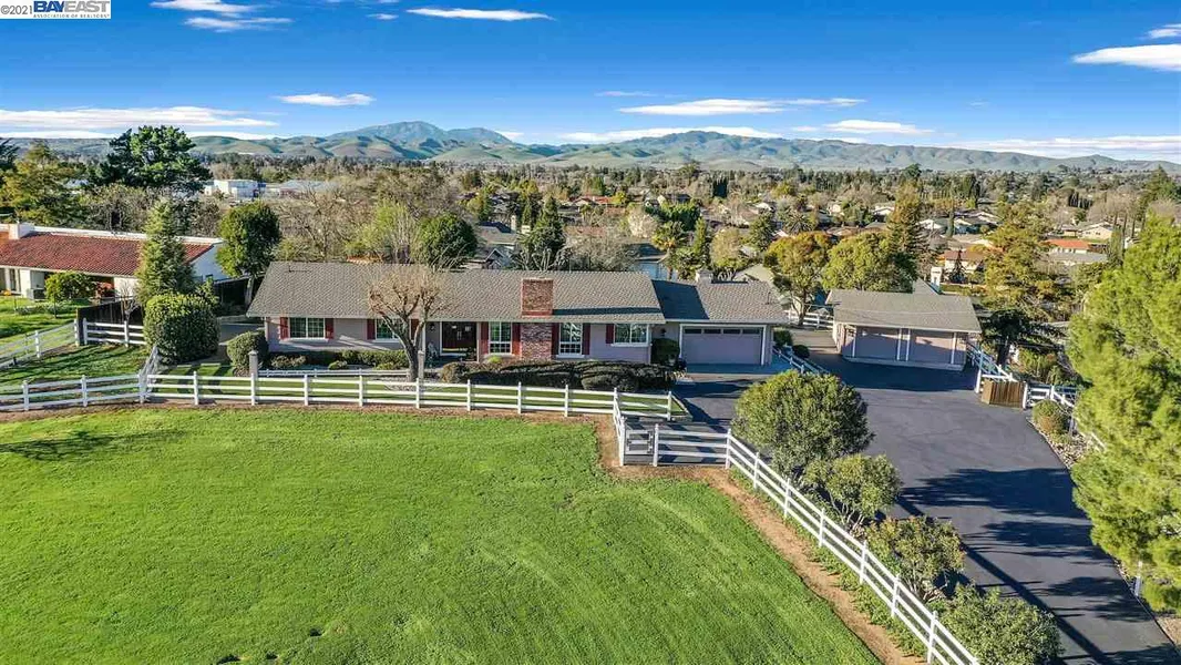 Location, Fabulous Views! Minutes to town and Wineries, live the Country Life, perfect for your own vineyard, a horse or other farm animals (with Permit). Lovely single story home with character, grand living room with historic antique mantel, gracious formal dining room boasts wood flooring repurposed from a barn in Fremont. The spacious kitchen has newer SS applicances, plenty of counter & cabinet space, accented by knotty pine paneling, beamed ceilings. The large master suite includes a private retreat or office, abundant closet space, private bath with large updated shower. Lovely landscaping surrounds the home with garden beds, extensive walkways, covered patio and Views of the surrounding hills, city lights. Plenty of room for the car enthusiast--4+ garages, detached garage with expansive floored upper storage with ladder, side yard access for boat, RV and family toys, plus ADU for...