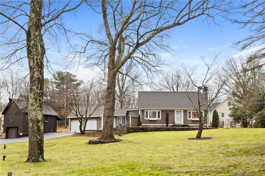 Welcome to this modern, country-style Cape set back from the street! Enter into a large mudroom, which could also be used for additional living space. The spacious kitchen with granite island boasts updated cabinets, lots of natural light and flows nicely into the dining room. The sizeable living room features a wood-burning fireplace, shiplap wall and a window into the dining room, giving an updated feel while also keeping the old charm. This home has three bedrooms and 2.5 bathrooms, with one bedroom and full bathroom on the first floor. The basement has an additional 436 sf of living space and an updated kitchenette with granite counters, refrigerator, and sink. The unfinished portion of the basement has plenty of storage for all your needs. Outside, the lot is over an acre, with a large fenced-in area as well as plenty of additional land. The patio is great for entertaining, relaxing...