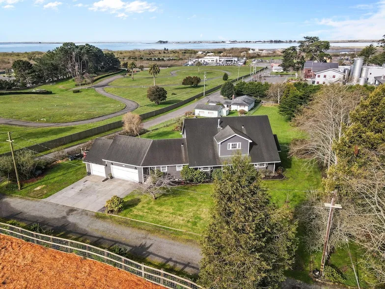 Nestled atop a scenic hill, this exceptional Cape Cod home offers sweeping panoramic views of the bay, its mouth, and the vast Pacific, all while maintaining the privacy from forested neighbors. Just outside the city of Eureka, this custom-built gem provides the perfect blend of serene rural living with close access to urban conveniences. Almost every room in this home captures breathtaking vistas, whether it's the shimmering bay, the tranquil forested landscape to the east, or the expansive ocean. The open-concept floor plan is ideal for both relaxation and entertaining, featuring a chef's kitchen designed for culinary enthusiasts, with ample space for creativity and gatherings. The spacious dining and living areas offer abundant natural light & seamless flow.