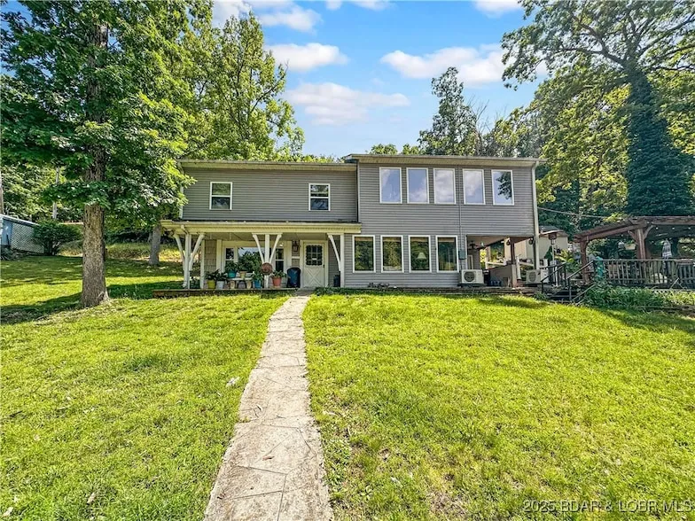 The Lake of the Ozarks is a popular destination for boating, fishing, and water sports, known for its beautiful scenery. This 2737 sq ft home features 5 bedrooms, 3 baths, and an open concept kitchen and dining area, perfect for entertaining. The patio offers a serene spot for outdoor dining with lake views. There is an additional waterfront vacant lot if you decide to add on to the home. Water enthusiasts will appreciate the 4 well covered dock with boat lifts and 3PWC lifts, swim platform with wet steps, slide, and pirate plank. The stainless steel cleaning station is ideal for fishing enthusiasts. The dock storage building is perfect for storing fishing equipment and water toys. The 2000 sq ft storage building/shop across the road is heated, with a loft for extra storage. Its extra tall overhead door accommodates an RV, adding convenience for travelers or guests with large veh...