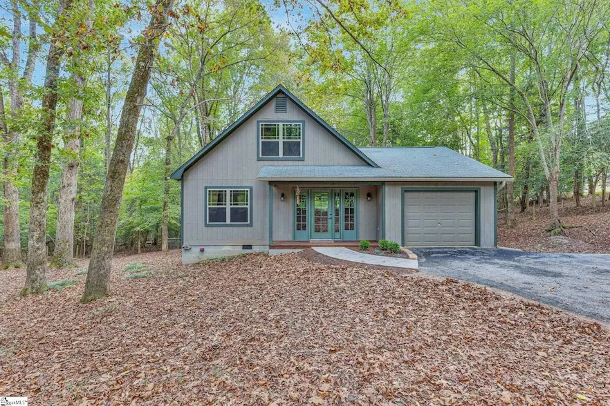 The Timber House is a Meticulously Maintained Craftsman Cabin tucked away on 1.38 partially fenced acres located minutes from Five Forks and local shopping. This craftsman-style cabin in the woods is a peaceful and unexpected retreat bordered on three sides by utility owned woodlands to insure continued privacy in the future. Expertly renovated (2018) and maintained by a retired contractor as his personal home, every improvement reflects pride in workmanship and attention to detail including whole house two-phase water filtration system and generator ready wiring for emergency auxiliary power. Step inside to find an inviting open layout where polished and leathered granite countertops pair beautifully with a double copper sink, creating a kitchen that blends rustic charm with refined taste and is sure to be the heart of the home. The cast iron and soapstone wood stove is a work of art and keeps the den toasty on cool nights while the attic fan can fill the home with fresh air on mild days. French doors open to a heated and cooled bright sunroom and side deck overlooking the wooded property perfect for morning coffee, quiet reading and watching local wildlife from above. This 3-bedroom, 2-bath home offers the best of comfort and craftsmanship, from rustic finishes to serene woodland views. Outside, you ll find a detached workshop wired with 220, ideal for woodworking, metalwork, or creative projects of all types. Be sure to see the walk out basement with concrete pad and shelving, neat as a pin and offering loads of additional storage. No detail has been overlooked in creating this well-cared for home. Call for a summary of updates and to schedule your showing today for this one of a kind property .