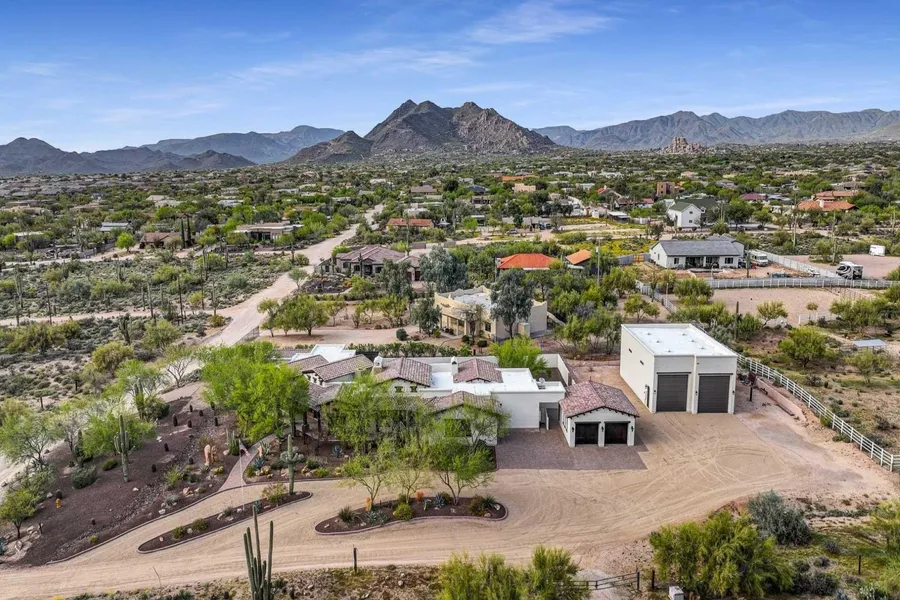Welcome to your desert dream home situated on over an acre of land with no HOA! Surrounded with beautiful mountain views and room to park your RV, boat, cars, and toys! Fresh interior and exterior paint plus full roof recoated in 2020! No detail left behind in this showstopper! Chefs kitchen with top of the line Viking gas range/ovens, warming drawer, and Subzero fridge! Spacious master with fireplace, sitting area, and access to backyard. Master bath with his/hers vanities, jetted tub, walk-in shower, and walk-in closet with custom built ins. All secondary bedrooms have walk-in closets! Separate air-conditioned garage that could be a CASITA! Backyard retreat with heated pool, spa, and water fall. 3 car garage in main plus RV garage that fits over 12 cars or all the toys you could want!