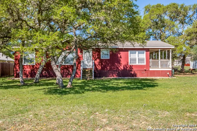 Nestled in the scenic Holiday Villages of Medina Lake, this adorable 3-bedroom, 2-bathroom home offers a perfect blend of comfort and convenience on just over 1 acre of land. Boasting a thoughtfully designed split floorplan, it provides an ideal layout for both privacy and entertaining. A highlight of this charming abode is the outside access from the primary bedroom onto the porch, allowing you to bask in the tranquil ambiance while observing whitetail deer grazing in the distance. Inside, the primary bathroom adds a touch of luxury with its double vanity, providing ample space for your daily routines. For those moments of relaxation, indulge in a soothing soak in the separate shower and tub, creating a spa-like retreat within your own home. In addition to its cozy interior, the property hosts a detached garage, perfect for housing tools and yard equipment, keeping your outdoor space or...