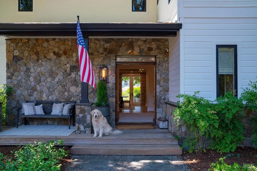 Designed for those who live fully and entertain effortlessly, a curated sanctuary where timeless craftsmanship meets effortless living. Reimagined by Kirsten Bennett Interiors (completed in 2025), the architecture harmonizes classic Modern elegance with Farmhouse sensibility and invites you to savor moments both grand & intimate. Reclaimed wood beams, polished plaster walls, one-of-a-kind antique French doors, & custom wrought iron details create a warm, textured ambiance throughout. Wide-plank white oak floors & limestone accents invite natural warmth, effortless style and continuity through the home. The chef's kitchen & scullery, alive with artisan tile & gleaming brass, inspires both culinary creativity and heartfelt gatherings. Indoor and outdoor living flow seamlessly, offering multiple gathering spaces framed by sweeping views of historic Three Palms Vineyard and Diamond Mountain. Entertain beside the outdoor kitchen or fireplace near the pool & spa. Enjoy pickleball, horseshoes, outdoor prepared feasts and multiple patios surrounded by mature gardens, and 600 vines. Two separate guest suites complete this extraordinary home and echo the rhythm of life hererooted in connection, a testament to the beauty that embraces the soul and elevates everyday moments