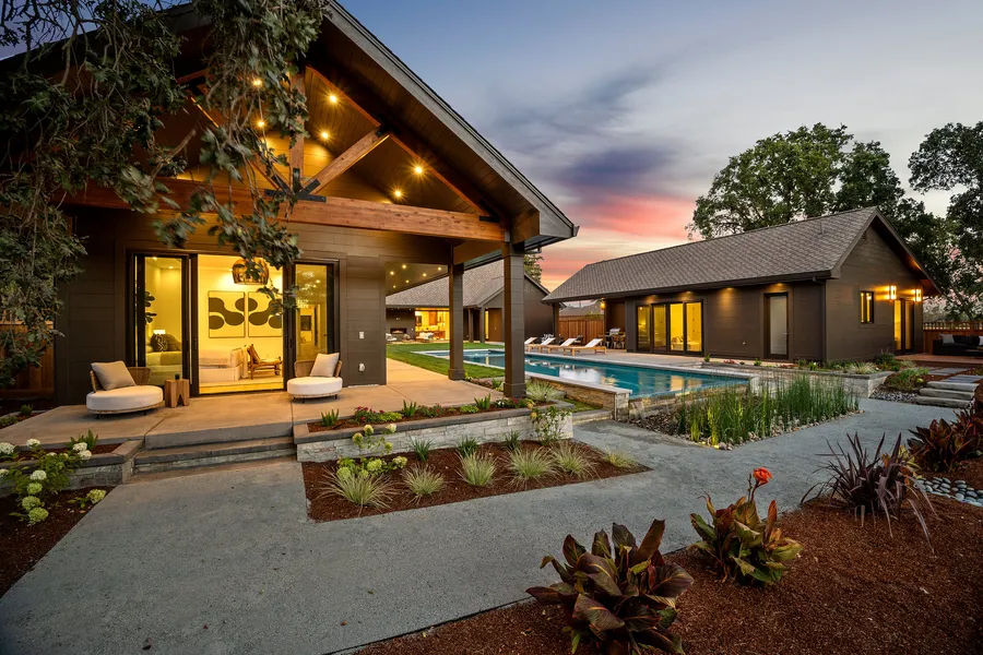 Dramatic, sleek & sexy. The Black Fox is brand-new construction on 1.38-acres less than 2 miles from the Plaza. Offering over 4,600 sq. ft. of living space to include 4 bedrooms in the main house, 1 bedroom in the ADU, 4 full baths & 2 half baths. Outdoor living space with waterfall edge pool, spa, multiple dining/seating areas, fireplace & outdoor kitchen, all overlooking a beautiful oak grove. Design elements range from custom walnut cabinetry & quartz countertops to 15-foot ceilings & soaring glass doors that access the exterior. Wide-plank European white oak floors t/o. Opulent primary suite & spa-like bath with oversized soaking tub. Junior suite on opposite wing. Massive great room with gas fireplace, dining area & gourmet kitchen. High-end appliances in kitchen to include SubZero & Bertazzoni. Designer light fixtures sourced from Kate Spade, Rejuvenation, Swami & EF Chapman. Spaci...